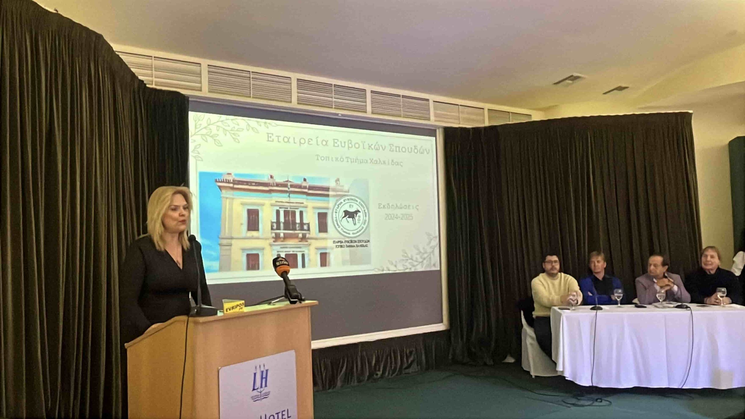 Με εξαιρετική επιτυχία και με ιδιαίτερα μεγάλη προσέλευση κόσμου, πραγματοποιήθηκε η πρώτη εκδήλωση του έτους 2026, του Τμήματος Χαλκίδος της Εταιρείας Ευβοϊκών Σπουδών, στην κατάμεστη αίθουσα του ξενοδοχείου Λούσυ. Η Πρόεδρος του Τμήματος Βασιλική Θάνου, πρώην Πρωθυπουργός, επίτ. Πρόεδρος του Αρείου Πάγου, στον χαιρετισμό της, ευχαρίστησε τον Σεβασμιώτατο Μητροπολίτη Χαλκίδος Ιστιαίας και Βορ. Σποράδων κ. Χρυσόστομο, ο οποίος ευλόγησε και έκοψε την βασιλόπιτα και το θεοφιλέστατο Επίσκοπο Σκοπέλου κ. Νικόδημο, ο οποίος, επίσης, παρευρέθηκε. Ευχαρίστησε επίσης, για την παρουσία τους, τους Βουλευτές Ν. Ευβοίας, της ΝΔ κα Καραμπατσώλη και του ΣΥΡΙΖΑ κ. Κεδίκογλου, τον πρώην Υπουργό και Βουλευτή κ. Παπαγεωργόπουλο, τον Αντιπεριφερειάρχη Στερεάς Ελλάδας κ. Βελισσαρίου, την Δήμαρχο Χαλκιδέων κ. Βάκα, τον Πρόεδρο του Δημοτικού Συμβουλίου κ. Σέρρα, τους Αντιδημάρχους κα Σακελλαράκη και κ. Αναστασιάδη, τον Περιφερειακό Σύμβουλο κ. Χαϊνά, τον εκπρόσωπο της Σχολής Πεζικού Χαλκίδας, Συνταγματάρχη κ. Σκούρα, τον Πλωτάρχη του Λιμενικού Σώματος κ. Μπόμπορη, την πρώην Πρόεδρο του Αρείου Πάγου κα Γεωργίου, τους Δικαστές και Εισαγγελείς από την Ένωση Ανωτάτων Δικαστών και Εισαγγελέων, τον Πρόεδρο του Δικηγορικού Συλλόγου Χαλκίδας κ. Γκίκα, την Πρόεδρο του Κεντρικού της Εταιρείας Ευβοϊκών Σπουδών κα Κομπορόζου, την Πρόεδρο του Λυκείου Ελληνίδων κα Ακριώτη, την Πρόεδρο και Διευθύνουσα του Ιδρύματος Πολιτισμού «Ιωάννης Καρακώστας» κα Παπαστρατή-Κυριακάκου και Μπαμπά αντίστοιχα, την Πρόεδρο των Σοροπτιμιστριών κα Καραγεώργη και τους εκδότες κ. Ιωάννη Φιλιππάκη, του ομίλου των εφημερίδων Δημοκρατία, Εστία, Θεσσαλονίκη, Ελευθερία της Λάρισας και τον εκδότη κ. Ηλία Λιβάνη, του εκδοτικού οίκου Λιβάνη. Καθώς και τον χορηγό της εκδήλωσης, την εταιρεία «ΜΕΤΚΑ ΑΤΕ», του Ομίλου της ΜΕΤΛΕΝ και προσωπικά τον Ευάγγ. Μυτιληναίο.